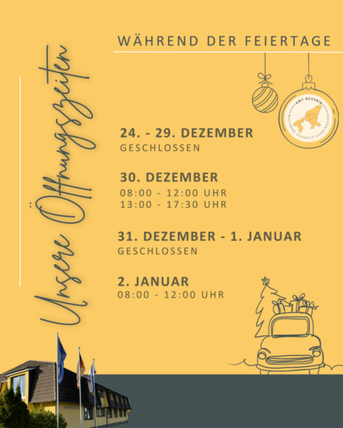 Zusätzlich sind wir am 2. Januar 2026 in der Zeit von 8:00 – 12:00 Uhr für Sie erreichbar.
